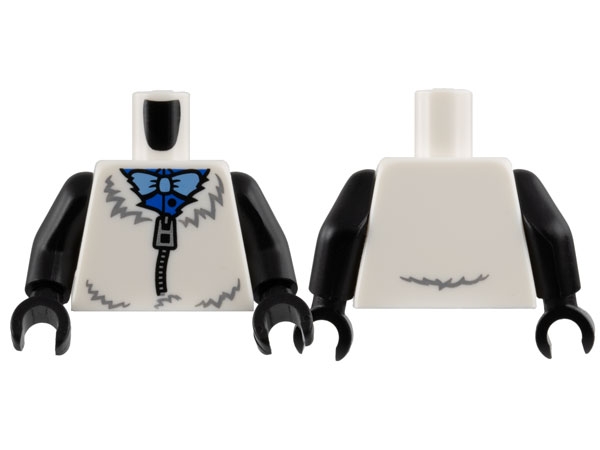Torso Panda Costume, Dark Bluish Gray Fur, Silver Zipper, Blue Shirt, Bright Light Blue Bow Tie Pattern (BAM) / Black Arms / Black Hands