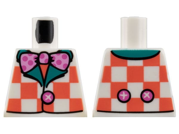 Torso Vest with Coral Checks, Dark Turquoise Lapels, Bright Pink Bow Tie with Dark Pink Polka Dots Pattern (BAM)