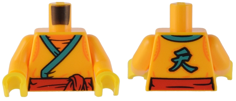 Torso Robe with Dark Turquoise Trim, Red Sash, and Chinese Logogram '天' (Heavens) on Back Pattern / Bright Light Orange Arms / Yellow Hands