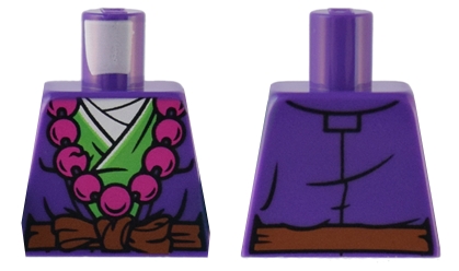 Torso Robe over Bright Green Robe, Reddish Brown Sash with Knot, Necklace with Large Magenta Beads Pattern