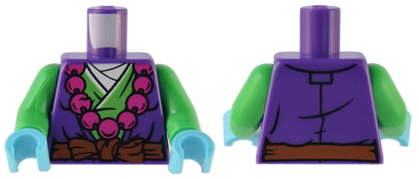 Torso Robe over Bright Green Robe, Reddish Brown Sash with Knot, Necklace with Large Magenta Beads Pattern / Bright Green Arms / Medium Azure Hands
