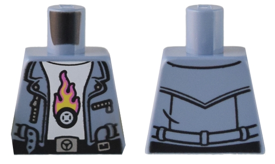 Torso Vest with Belt and Silver Zippers over White Shirt with Tire with Flames Pattern