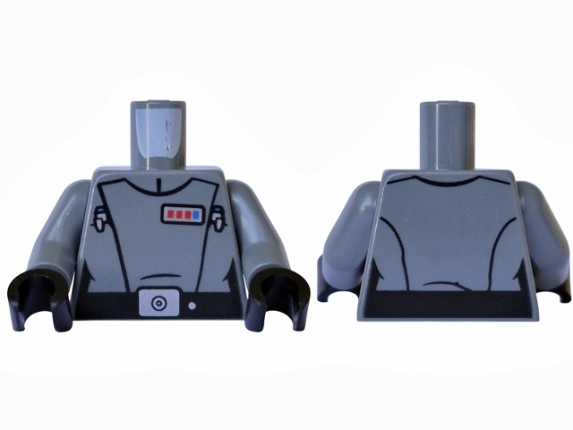 Torso Female SW Imperial Crew Uniform with Black Belt with Silver Buckle, Badge with 3 Red and 1 Blue Square Pattern / Dark Bluish Gray Arms / Black Hands