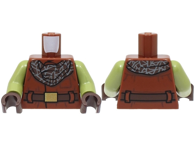 Torso Coat with Pocket and Dark Brown Belt with Gold Buckle, Bandana with Dark Bluish Gray Trim Pattern / Olive Green Arms / Dark Brown Hands