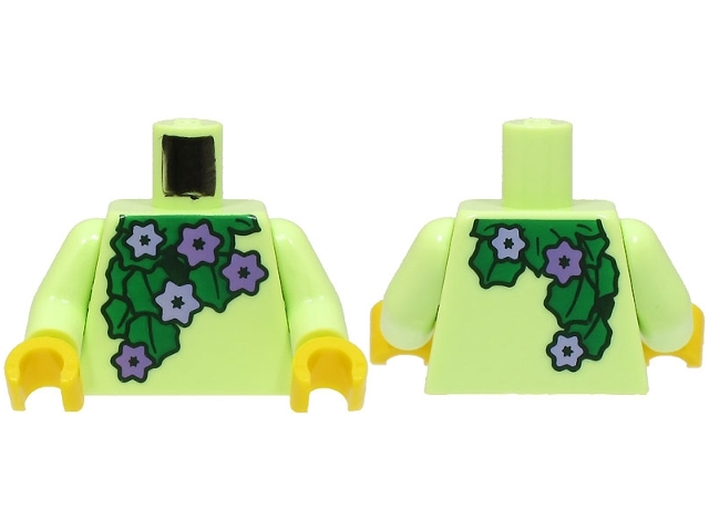 Torso with Green Leaves and Medium Lavender and Lavender Flowers Pattern (BAM) / Yellowish Green Arms / Yellow Hands