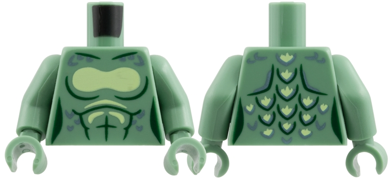 Torso Female Merperson with Dark Green Contour Lines, Yellowish Green Bra and Metallic Light Blue Scales Pattern / Sand Green Arms / Sand Green Hands