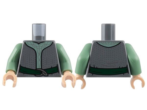 Torso Robe with Sand Green Center Panel, Silver Spots and Filigree, Dark Green Sash Pattern / Sand Green Arms / Light Nougat Hands