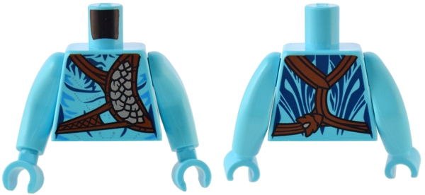 Torso Na'vi with Dark Blue Markings, Reddish Brown Strap and Silver Belt, and Silver Spots Pattern / Medium Azure Arms Long / Medium Azure Hands