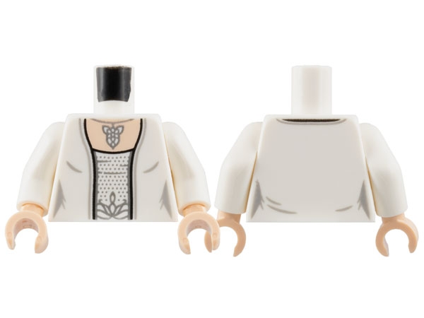Torso Female Robe, Center Panel with Silver Spots, Evenstar Pendant Necklace, Light Nougat Neck Pattern / White Arms / Light Nougat Hands