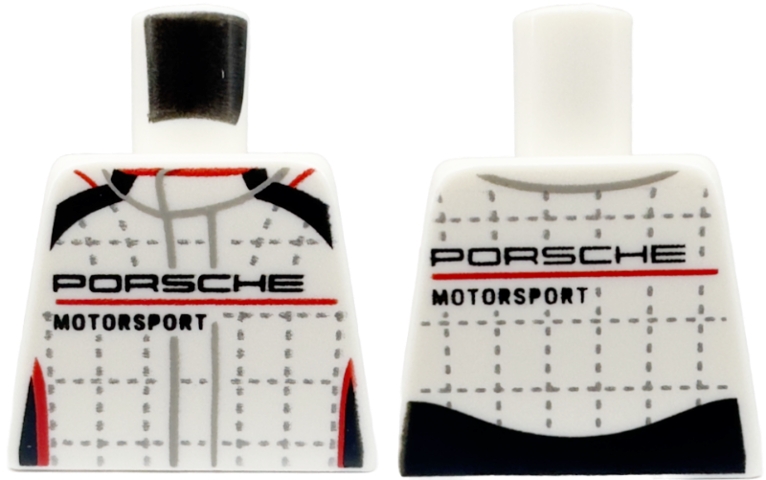 Torso Racing Suit with 'PORSCHE MOTORSPORT', Black and Red Stripes, and Silver Lines and Stitching Pattern