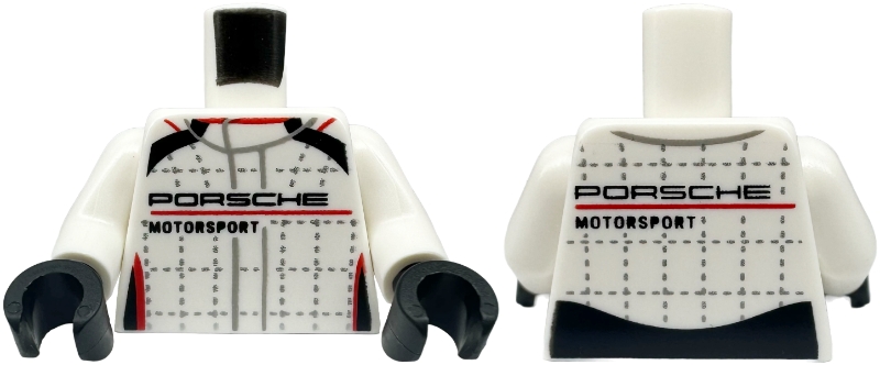 Torso Racing Suit with 'PORSCHE MOTORSPORT', Black and Red Stripes, and Silver Lines and Stitching Pattern / White Arms / Black Hands