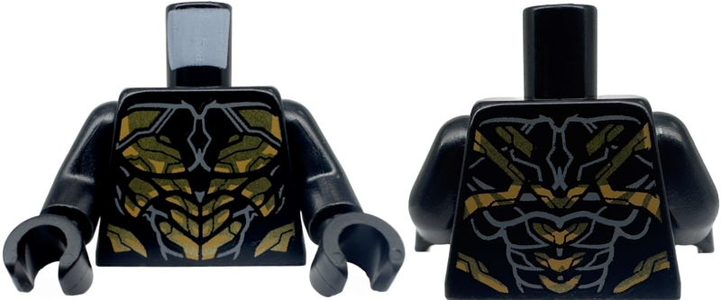 Torso Armor with Gold Scales and Dark Bluish Gray Lines with Short End Lines and Tips at Neck Pattern / Black Arms / Black Hands