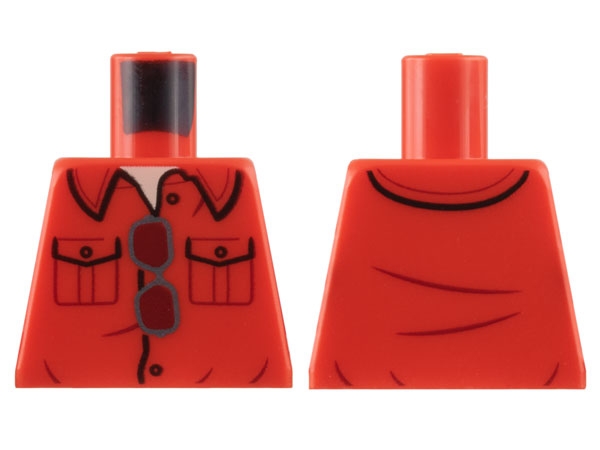 Torso Collar Shirt with 2 Pockets, Light Nougat Neck, Silver Glasses with Dark Red Lenses Pattern