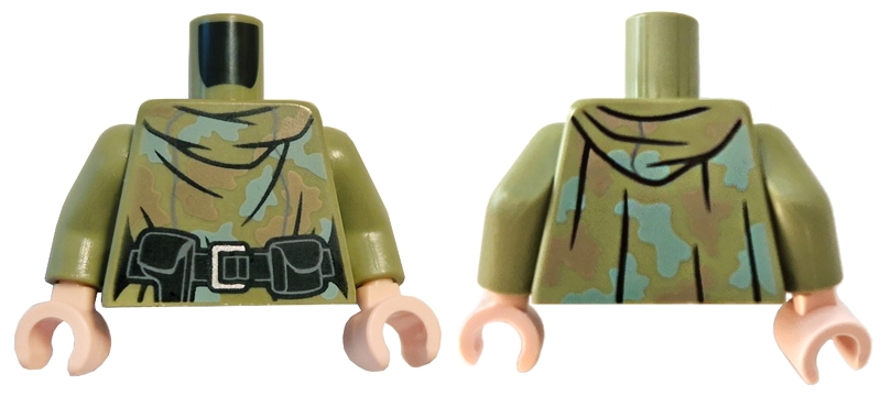 Torso Female Hooded Shirt Camouflage with Sand Green and Dark Tan Spots, Black Belt with Holster and Pouch Pattern / Olive Green Arms / Light Nougat Hands