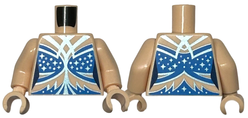 Torso Female Blue Bikini Bra Top with Metallic Light Blue Lines, Shapes and Sparkles and White Dots Pattern / Light Nougat Arms / Light Nougat Hands