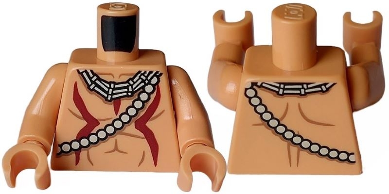 Torso with Dark Red and Medium Nougat Lines, White Necklace and Shoulder Belt Pattern / Nougat Arms / Nougat Hands