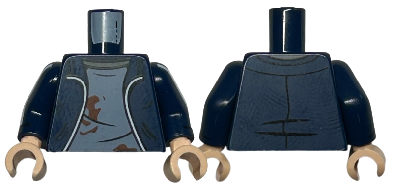 Torso Jacket with Silver Trim, Sand Blue Shirt, Reddish Brown Dirt Stains Pattern / Dark Blue Arms with White Stripes Pattern / Light Nougat Hands