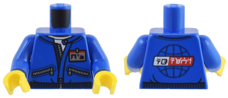 Torso Jacket with Silver Zipper, Pockets, and ID Badge, and Globe and Ninjago Logogram 'NG NEWS' on Back Pattern / Blue Arms / Yellow Hands