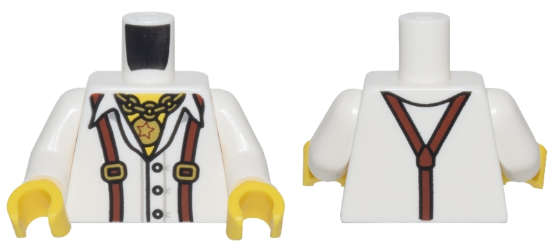 Torso Shirt with Open Collar, Reddish Brown Suspenders, and Gold Chain and Star Pendant Pattern / White Arms / Yellow Hands