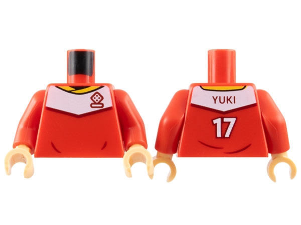 Torso Soccer Uniform, Yellow Collar, White Shoulder Panel, Dark Red Dice Logo, 'YUKI 17' on Back Pattern / Red Arms / Medium Tan Hands