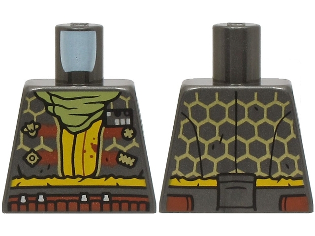 Torso Coat with Gold Hexagons, Bright Light Orange Shirt, Olive Green Bandana, Reddish Brown Belt Pattern