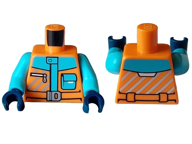 Torso Jacket with Medium Azure Panels and Pocket with White Flap, Silver Belt Buckle and Diagonal Stripes Pattern / Medium Azure Arms / Dark Blue Hands