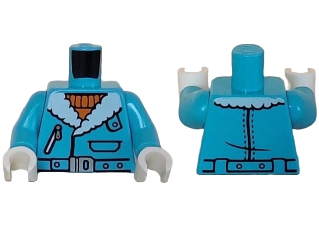 Torso Jacket with White Fur Collar, Pocket with Zipper, and Belt with Silver Buckle over Orange Sweater Pattern / Medium Azure Arms / White Hands
