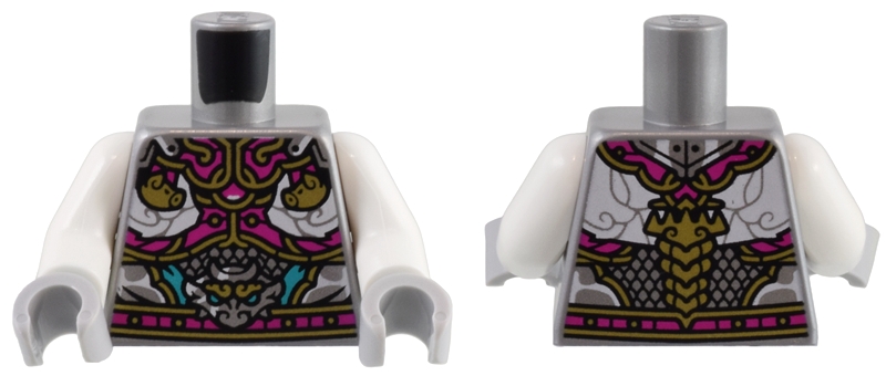 Torso Armor with Magenta and Gold Plates, Pig Heads, White Clouds, and Silver Dragon Head Pattern / White Arms / Light Bluish Gray Hands