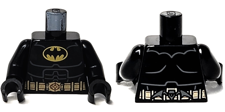 Torso Batman Logo, Dark Bluish Gray Armor Contour Lines, Gold Utility Belt with Batarang on Back Pattern / Black Arms / Black Hands
