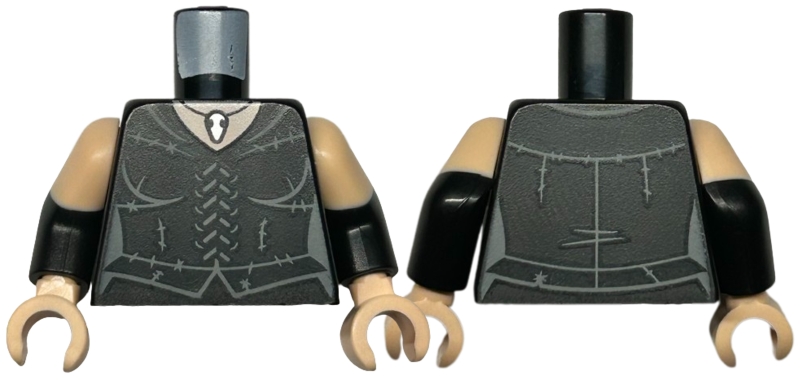 Torso Female Corset Dress with Dark Bluish Gray Laces and Stitching, Silver Pendant Necklace, Light Nougat Neck Pattern / Black Arms with Molded Light Nougat Short Sleeves Pattern / Light Nougat Hands