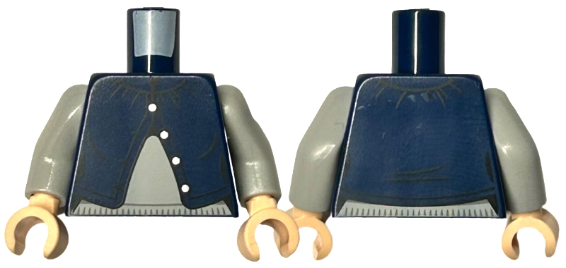 Torso Female Cardigan Half Open with Silver Buttons over Light Bluish Gray Sweater Pattern / Light Bluish Gray Arms / Light Nougat Hands