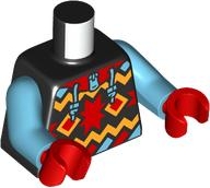 Torso Jacket with Medium Azure Drawstrings and Zipper, Red Collar, and Bright Light Orange Geometric Shapes Pattern / Medium Azure Arms / Red Hands