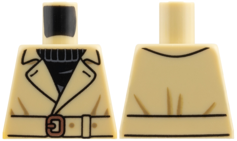 Torso Jacket Trench Coat over Black Sweater, Belt with Copper Buckle Pattern