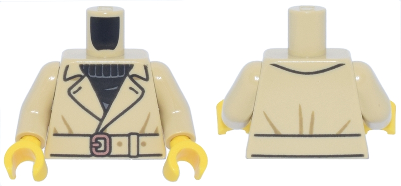 Torso Jacket Trench Coat over Black Sweater, Belt with Copper Buckle Pattern / Tan Arms / Yellow Hands