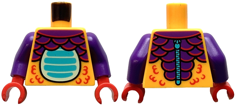 Torso Dragon Costume, Dark Purple and Red Scales, Medium Blue Stomach, Light Bluish Gray Zipper on Back Pattern / Dark Purple Arms / Red Hands