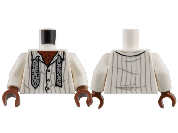 Torso Shirt with Buttons, Open Collar, and Light Bluish Gray Pinstripes, Loose Tie with Squares, Reddish Brown Hairy Chest Pattern / White Arms / Reddish Brown Hands