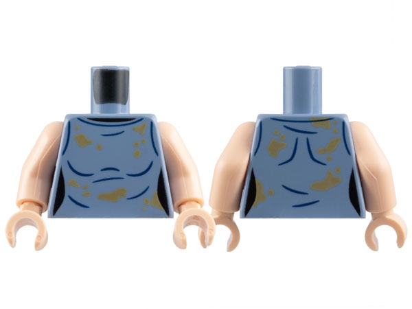Torso Female Sleeveless Shirt with Dark Blue Creases and Dark Tan Dirt Stains Pattern / Light Nougat Arms / Light Nougat Hands