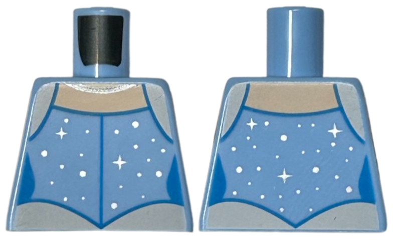 Torso Dress Top with White Shoulders and Waist, Silver Sparkles and Dots, Light Nougat Neck, Necklace Pattern