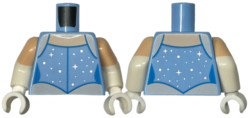 Torso Dress Top with White Shoulders and Waist, Silver Sparkles and Dots, Light Nougat Neck, Necklace Pattern / White Arms with Molded Light Nougat Short Sleeves Pattern / White Hands