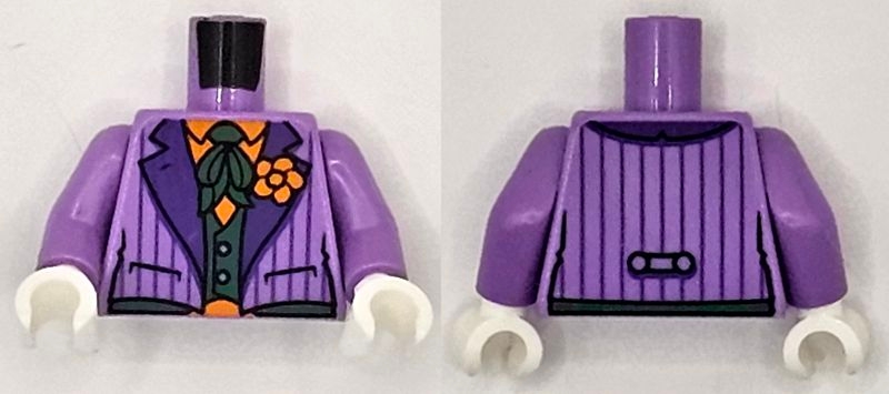 Torso Suit Jacket with Dark Purple Lapels and Stripes and Orange Flower over Shirt and Dark Green Vest and Tie Pattern / Medium Lavender Arms / White Hands