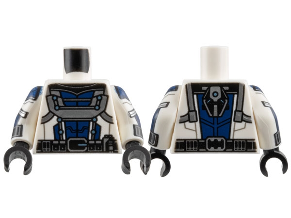 Torso Armor with Dark Blue Center Panel, Silver Trim, Black Collar, and Metallic Light Blue Dots, Utility Belt Pattern / White Arms with Black Cuffs, Dark Blue Armor, Metallic Light Blue Dots, and Silver Trim Pattern / Black Hands