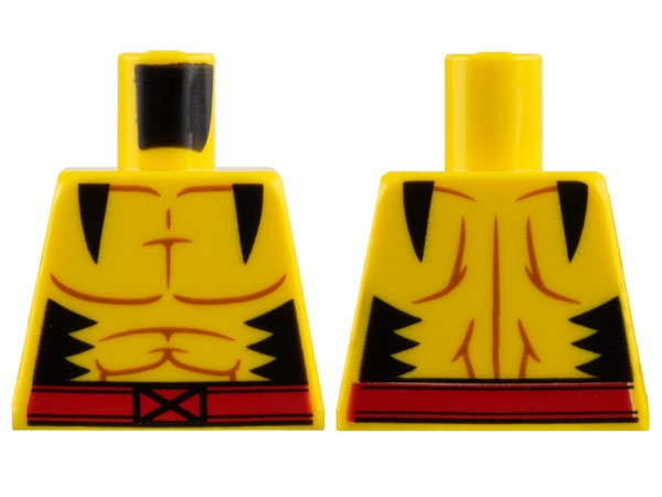 Torso Super Hero Costume with Reddish Brown Muscles Outline, Black Jagged Panels, Red Belt with X-Men Logo Buckle Pattern