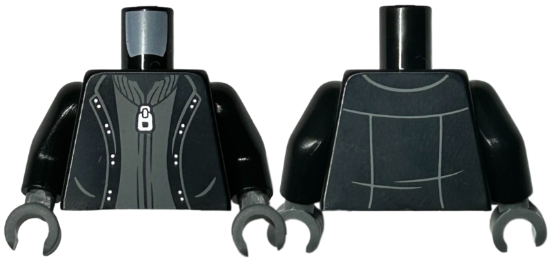 Torso Jacket Open over Dark Bluish Gray Cardigan Sweater with Silver Zipper Pattern / Black Arms / Dark Bluish Gray Hands