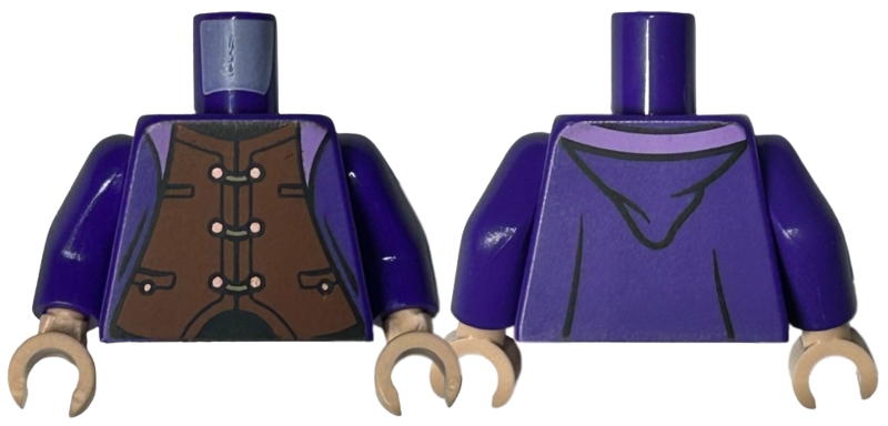 Torso Robe Open with Lavender Lining over Reddish Brown Vest with Pockets and Copper Buttons, Black Neck and Waist Pattern / Dark Purple Arms / Light Nougat Hands