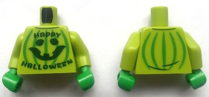 Torso Sweater with Dark Green 'HAPPY HALLOWEEN' and Pumpkin Jack O' Lantern with Bright Green Stripes Pattern (BAM) / Lime Arms / Bright Green Hands