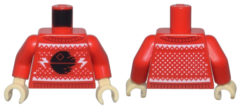Torso Knit Fair Isle Holiday Sweater with Black SW Death Star II, White Trim and Lightning Bolts Pattern / Red Arms / Tan Hands