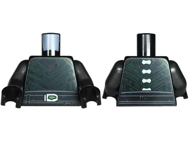 Torso SW Leather Armor with Green Chevron Lines, Belt with Bright Green and Silver Buckle, Clasps on Back Pattern / Pearl Dark Gray Arms / Black Hands