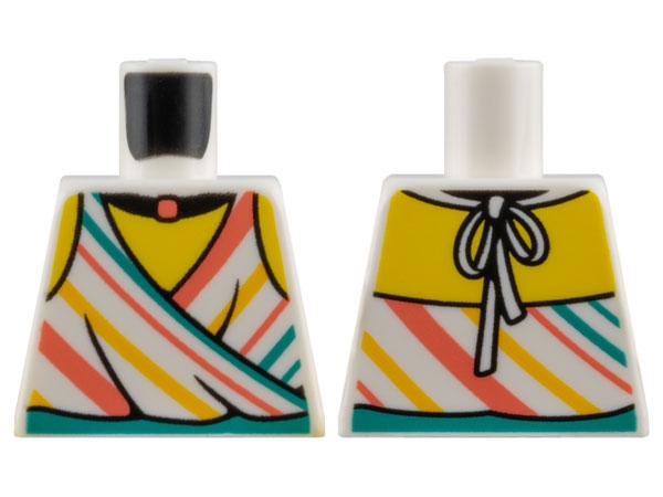 Torso Halter Top with Bright Light Orange, Coral, and Dark Turquoise Diagonal Stripes, Black Choker Necklace, Yellow Neck and Shoulders Pattern