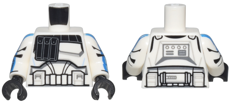 Torso SW Armor Captain Rex, Black Pouches and Detailed Belt Pattern (Clone Wars) / White Arms with Armor Panels, Worn Blue Stripes, and Tally Marks Pattern / Black Hands