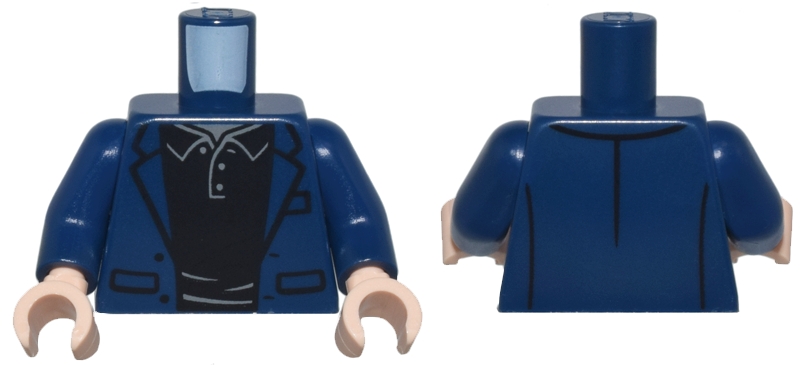 Torso Jacket Open with Pockets over Black Shirt with Dark Bluish Gray Buttons and Collar Pattern / Dark Blue Arms / Light Nougat Hands